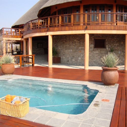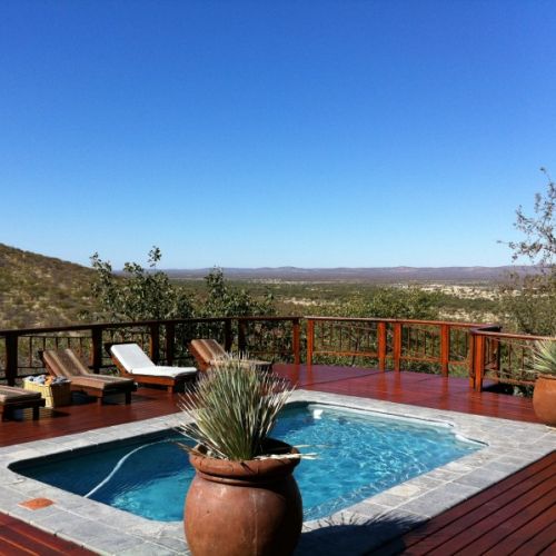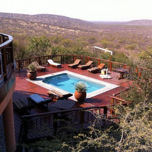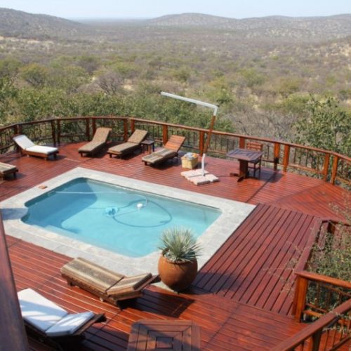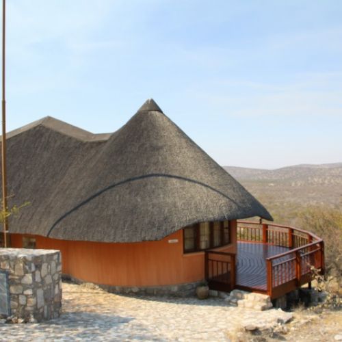 Våra jägare blir inkvarterade på den praktfulla Etosha Mountain Lodge. Tidigare kunde man också välja att bo på Etosha Safari Lodge, men den är nu uteslutande en turistlodge. Etosha Mountain Lodge är byggt på toppen av ett mindre berg och har en storslagen utsikt över det kringliggande området. Det är 6 luxuösa stråtäckta hus samt en svit med egen privat utsiktsterrass. Alla rum har tillhörande badrum som är stora och har såväl dusch som badkar. Härutöver är det lapa, matsal, bar, swimmingpool och vinkällare. En vistelse hos Etosha Heights är dessutom en kulinarisk upplevelse utöver det vanliga. Du kan lugnt se fram emot en vistelse, när det blir din tur.