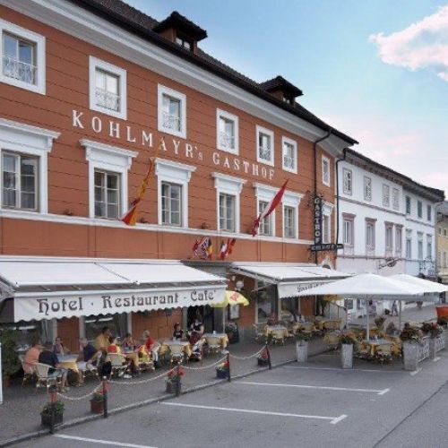 Gasthof Kohlmayr, ett gammalt mycket trevligt hotel i Gmünd. Hotellet ligger vid ett litet torg i byn. En stor bra frukost är inkluderat i priset. Det är ganska billigt att äta ute i Österrike, och det finns flera ställen att prova i Gmünd, där du kan testa de österrikiska kökets specialiteter. Ett