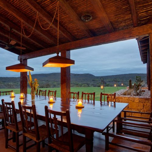 Efter en lång dag med duvjakt återvänder jägarna till lodgen, där en avslappnad kväll med god mat och dryck väntar. Den inbjudande öppna spisen i vardagsrummet och den välutrustade baren hjälper jägarna att komma i avslappnad stämning innan middagen serveras. Kockens favoriter inkluderar duvbröst fyllt med peppar, inslaget i bacon och grillat över kol, duvbröst "milanesa" (filé, panerad och stekt), stekta perdiz-ben samt lokala ostar och charkuterivaror.