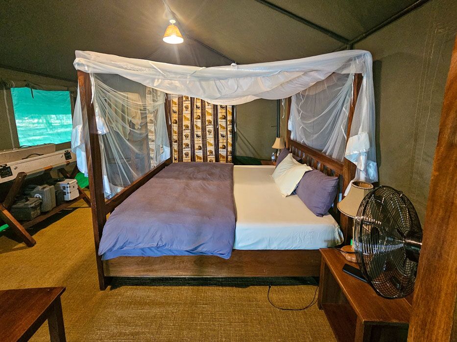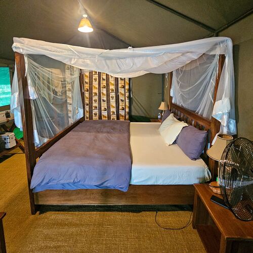 Boendet sker i klassiska safaritält, halmtäckta tält eller rejäla bungalows – alla med eget badrum och toalett. Standarden är god och autentisk, med fokus på komfort i naturen snarare än traditionell lyx.