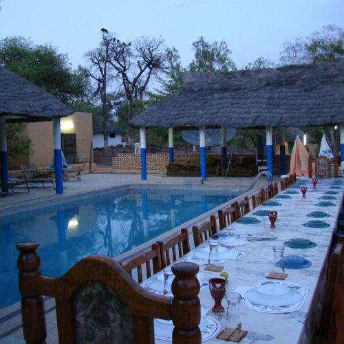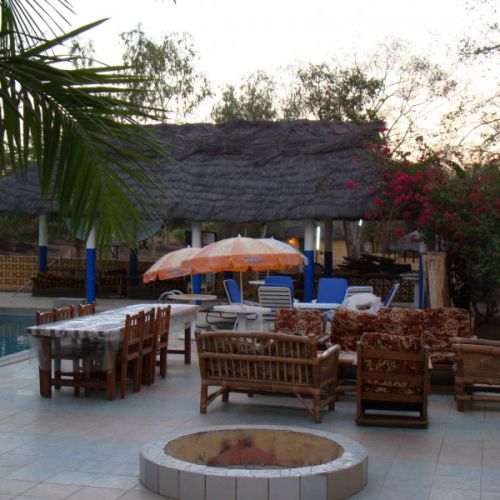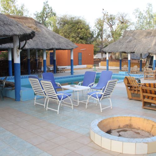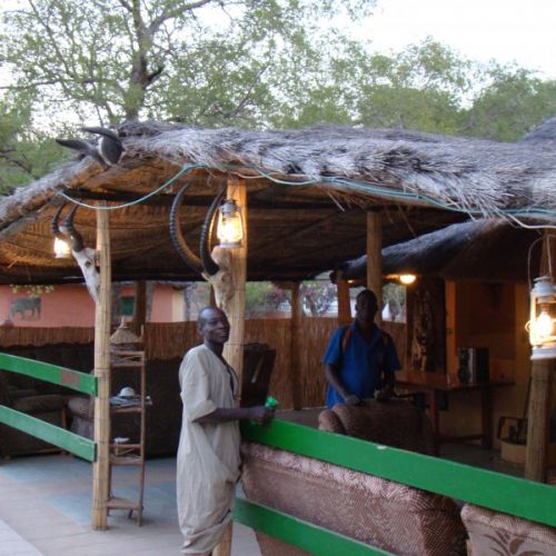 Campen som är belägen ca 15 minuters körning från själva jaktkoncessionen är rymlig och efter västafrikanska förhållanden mycket komfortabelt och består av stråtäckta bungalows med faciliteter såsom air-condition och privat badrum. Sovrummen är enkelt inredda men det finns vad man behöver. Det finns även ett trevligt gemensamt område med servering, aktiviteter, eldstad och en swimmingpool.