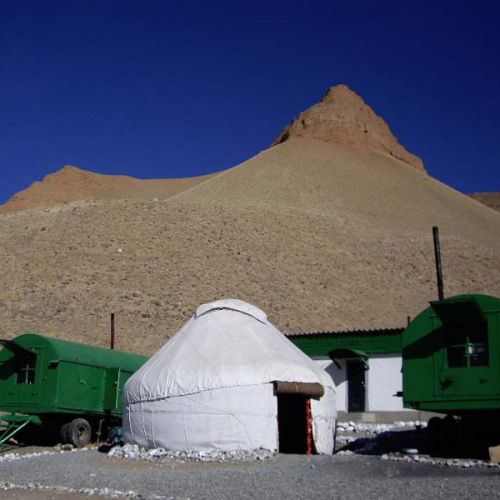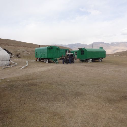 Under jakten bor man beroende på jaktområdet antingen i läger uppbyggt av mobila husvagnar, i stugor av trä eller i de traditionella jurter (kirgiska runda tält, som man finner på många ställe i Asien, t.ex. också i Mongoliet). Tälten är uppvärmda med kamin och ganska komfortabla. Under själva jakten får man vara inställd på att man av och till bor i mycket primitiva tält, eller grottliknande hålor. Det är därför viktigt att man tar med en riktigt bra sovsäck samt ett liggunderlag.