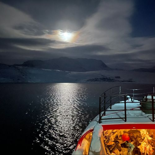 Ved ankomst til Nuuk bliver man modtaget i lufthavnen og kørt med bus ned til skibet, hvor man bliver indkvarteret mandag - torsdag. Når man er blevet indkvarteret på båden, sejles der ud til første jagtområde. På første dagen vil der blive informeret om sikkerhedsinstrukser og de kommende dages ophold og jagt.