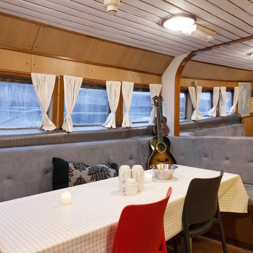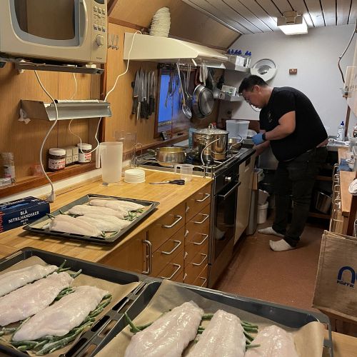 På fordækket er der åbent dæk hvor man arbejder og hænger dyr op. På agterdækket, overdækket arbejdsområde og oppe på broen er der et solområde hvor udsigten og solen kan nydes.