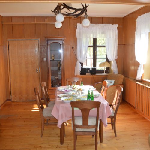 Boende sker i jakthuset på reviret i lugn miljö i skogen. Gästdelen på plan 1 innehåller - förutom vardagsrum med öppen spis - 5 dubbelrum, 1 trippelrum och 1 enkelrum. De flesta rummen har eget badrum och toalett. Det finns ett kylskåp till våra gästers förfogande, och det finns tillgång till låst garage och kyl förråd. Det finns Wi-Fi och mobiltäckning.
