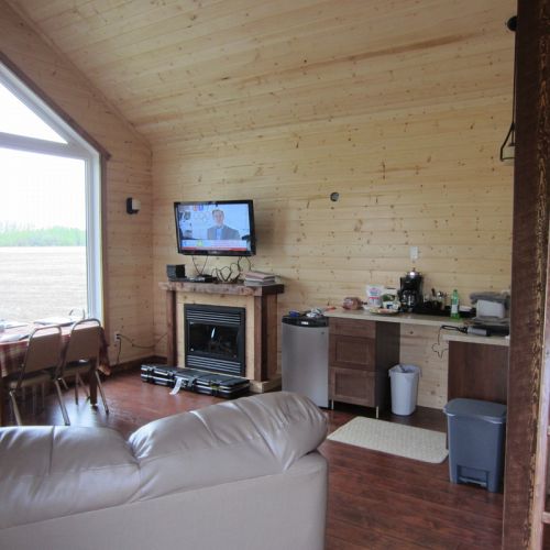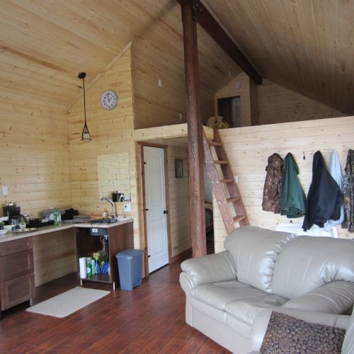 Indkvarteringen foregår i hytter med et komplet køkken, spisestue og opholdsstue. Hver jæger har adgang til sit eget rum, med en komfortabel seng. Der er tre brusere, tv, wifi, køleskab, kaffemaskine, pejs og alt andet der hører sig til i en jagthytte.