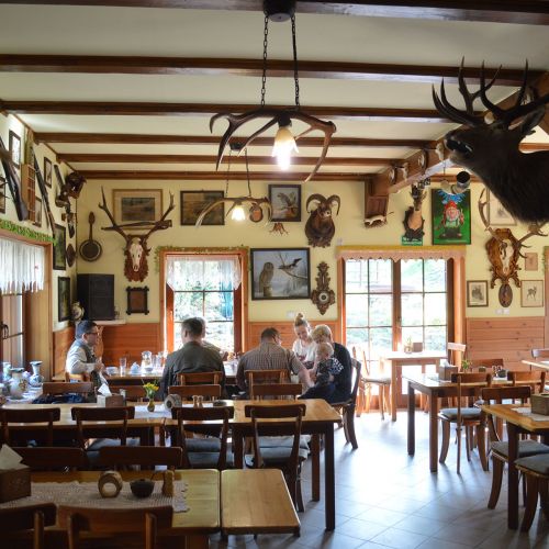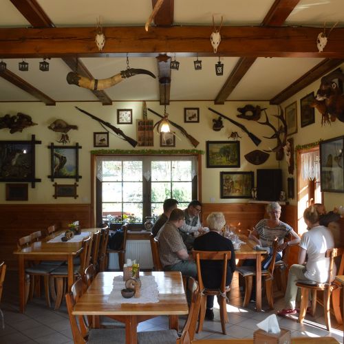 Under din vistelse bor du på första våningen i en charmig familjerestaurang i härliga omgivningar mitt i reviret. Här hittar du mysiga rum och en varm atmosfär. Även om området lockar många turister – särskilt vintertid – är jaktmarkerna ostörda, eftersom jakten sker på avstånd från turistområdet. Det finns Wi-Fi och mobiltäckning.