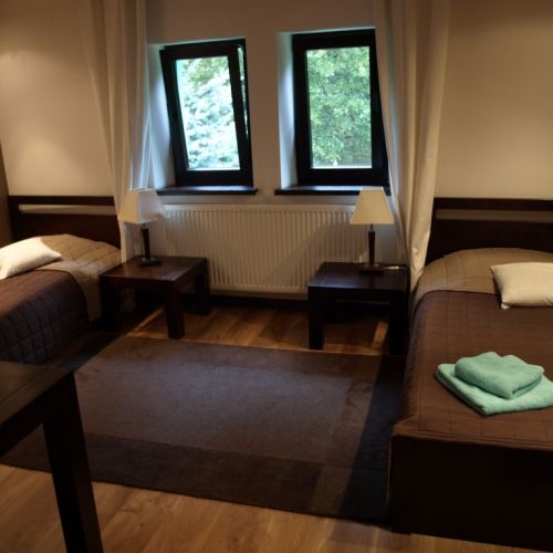 Boendet sker i ett jakthus mitt i skogen i vackra omgivningar med 2 km till närmaste granne. Här bor också våra jägare som jagar vid Zlotoryja. Gästdelen på plan 1 innehåller förutom ett mysigt vardagsrum 6 dubbelrum och ett trebäddsrum. Alla rum har egen toalett och badrum. Ett kylskåp finns i vardagsrummet. Det finns tillgång till låst garage och kylförråd. Legnicas jaktchef heter Remigiusz Baran, och han talar lite tyska. Det finns Wi-Fi och mobiltäckning.