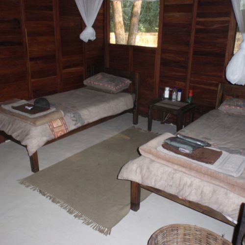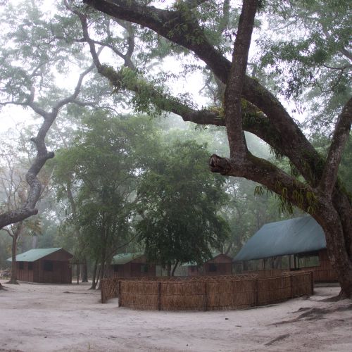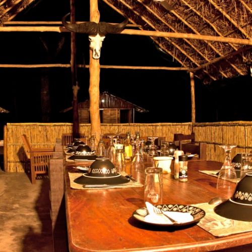 Man blir inkvarterad i en klassisk bushcamp bestående av 4 gästhus, alla med bad och toalett samt en uppehålls- och mathus uppbyggt av strå och palmblad samt en trevlig eldstad där man på kvällen över en kall drink berättar om dagens upplevelser. Maten är av hög klass och vilt ingår ofta i de vällagade måltiderna. Av och till när man jagar i närliggande område används mer enkla tältcamps belägna på olika ställen i det enorma jaktområdet.