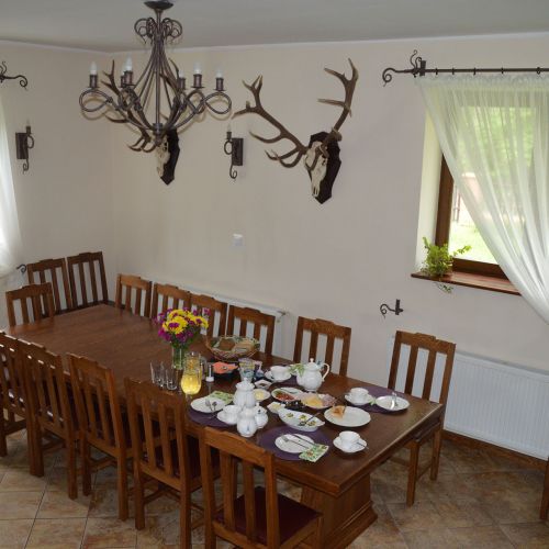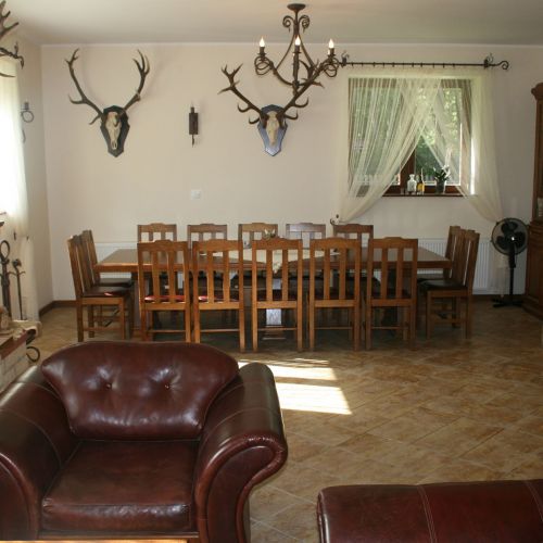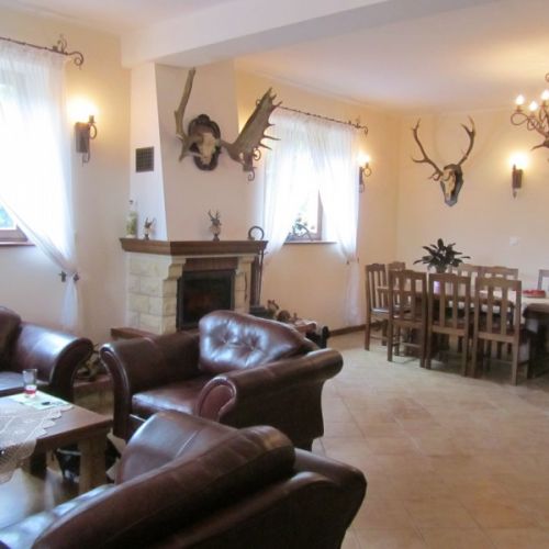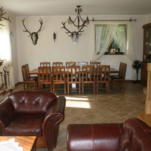 Boende sker i revirets mysiga jakthus i härliga omgivningar. Gästdelen på plan 1 innehåller 6 dubbelrum, alla med eget badrum och toalett. Ett kylskåp finns tillgängligt för våra gäster. Det finns tillgång till låst garage och kylförråd. Måltiderna intas i vardagsrummet/matsalen på bottenvåningen. Det finns Wi-Fi och mobiltäckning.