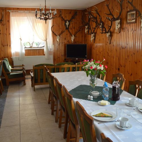 Inkvarteringen sker i ett bra och trevligt jakthus i Rzepin. Det är 3 enkelrum, 4 dubbelrum samt ett 3-bäddsrum- alla med eget bad/wc. Huset rymmer dessutom ett trevligt mat- och sällskapsrum. Jaktchef är Piotr Brzózka och han och hans personal är mycket kompetenta och dessutom trevliga att umgås med. Piotr talar lite tyska. Det finns tillgång till kylskåp för våra jägare samt ett kylhus intill inkvarteringen. Det finns Wi-Fi och mobiltäckning. I närheten av inkvarteringen ligger en botanisk trädgård, där det finns möjligheter till fiske och ridning.