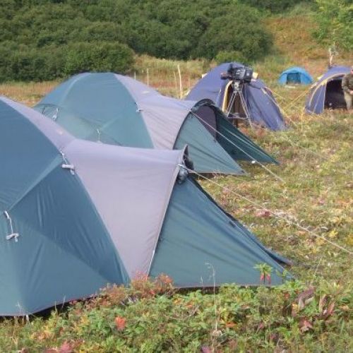Campen består av moderna vind- och vattentäta tält. Det är ett seperat stort tält till matsal och ett för bad. Campen ligger i en bergsdal på 800 -1000 meters höjd. Varje camp har en kock, som tillreder hemlagad mat från grunden. Varje jägare har sitt eget tält.