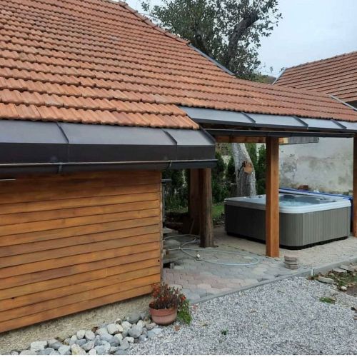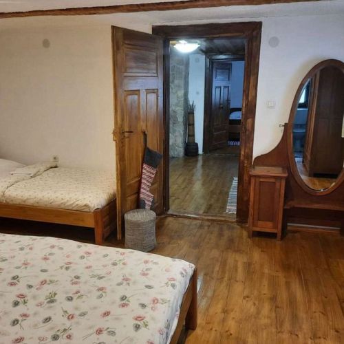 I bottenvåningen finns 7 sängplatser, 2 toaletter, kök och matrum, allrum, bastu och öppen spis. Övre våningen har 3 sängplatser, allrum, toalett och kök, samt separat liggande gillestuga med stor eldstad och utomhusspa.
