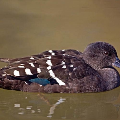 Beskrivning: Den är svart med vita fläckar på ryggen, en mörk näbb, orange fötter och ben. Den har ett grönaktigt streck på vingen, som oftast ses när den flyger. Det är en liten snabbflygande and, som kan vara utmanande att nedlägga.