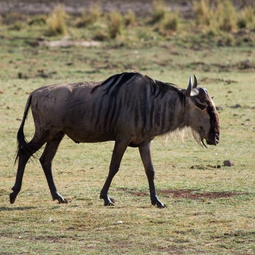 Beskrivning: Endast Blue Wildebeest beskrivs här då skillnaden på denna och de två andra arterna är minimal. Blue Wildebeest är ett stort djur av gnufamiljen, och kan väga upp till 300 kg och kan nå en mankhöjd på 140 cm. Pälsen är melerat blågrå. Hornen påminner om buffelhorn, dock mycket mindre.