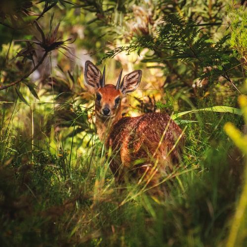 Beskrivning: Liten antilop med en vikt på 8-10 kg och en mankhöjd som normalt inte överstiger 50 cm. Grysbucken är gråbrun med vit teckning över ögonen och under halsen. Hornen som är mycket små är svarta med små tvärgående räfflor.