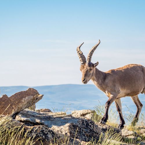 Beskrivning: Mellanstort djur med kompakt kropp och långa kraftiga ben. Den spanska stenbocken når mankhöjder på upp till 75 cm och en vikt på omkring 80 kg. Pälsfärgen är brun med svarta och vita teckningar på benen och under buken. Hornen som är kraftiga varierar mycket i form från underart till underart. Underarten från Gredos har lyrformade horn medan andra av underarterna har horn som svänger ut mot sidan. Vanligt för hornen hos samtliga underarter är att de alla har tydligt markerade årsringar. Både bock och get har horn, men bockens är kraftigast.