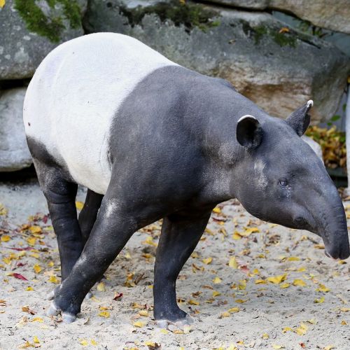 Beskrivning: Tapir med gråbrun grundfärg. Från mitten av kroppen och baktill övergång till gråvit färg. Kroppsvikt upp till 300 kg, kroppslängd utan svans(10 cm) upp till 250 cm och en höjd på gott och väl 100 cm.