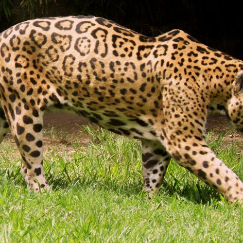 Beskrivning: Vikt upp till ca 160 kg vid en mankhöjd av 75 cm och en kroppslängd, utan svans på 240 cm. Tung katt med gul grundfärg med svarta fläckar. Fläckarna på sidan och ryggen ser ut som rosetter med en svart prick i centrum. Ögonfärgen är gyllene.