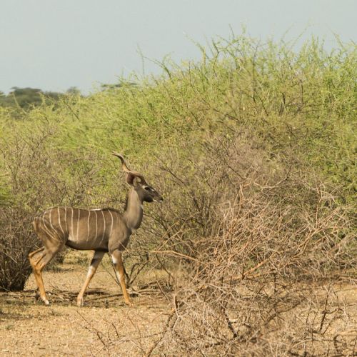Beskrivning: Utseende som en större kudu men med en höjd på 100 cm och en vikt på mellan 90 och 100 kg. Mindre kudu har dock fler tvärgående ränder än sin större släkting, (större kudu har ca 7, den mindre kudun ca 9).