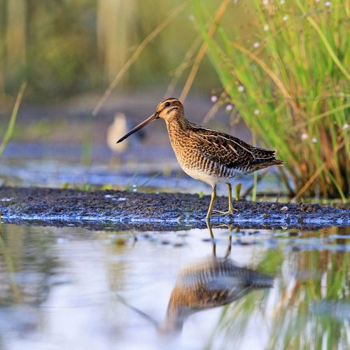 Beskrivelse: Lille vadefugl, godt camoufleret og med et langt næb. Spidset brunt og sort over, med fed, bufffarvede striber på bagsiden, der danner en V. 25-27cm i størrelse.