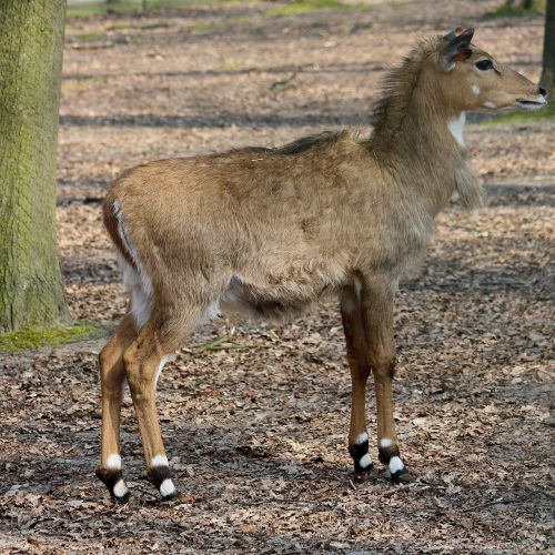 Beskrivning: Stor antilop med gråaktig päls och en kroppsvikt på upp till 245 kg. Längd, utan svans (55 cm), upp till 210 cm samt en mankhöjd på upp till 150 cm.
