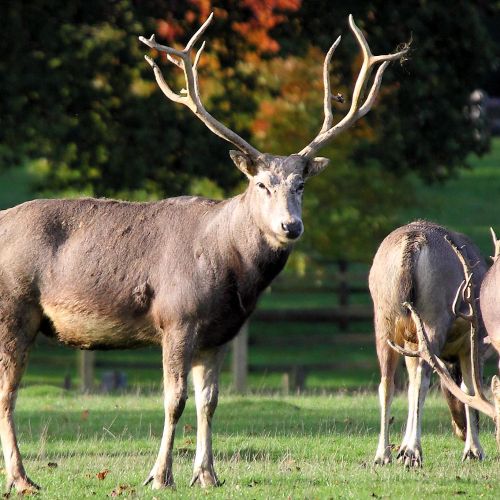 Beskrivning: Stor hjortart med vikter på upp till 300 kg och en mankhöjd på 125 cm. Grundfärgen är gråbrun hela året. Hornen är kraftiga och oregelbundna. Efter rosenstocken delar hornen upp sig i två mycket långa stänger där det bara finns spetsar på den främre.