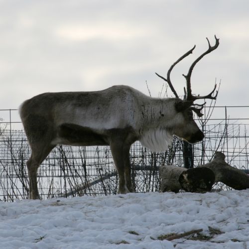 Beskrivning: Stor hjort med kroppsvikter på upp till 230 kg. Mankhöjd upp till 130 cm och en kroppslängd på upp till 220 cm. Under sommaren är pälsen chokladbrun med vita partier på framkroppen. Under vintern är den nästan helt vit, speciellt de norra bestånden. Båda kön bär horn, hanens är dock kraftigast. Hornen böjer sig bakåt och sedan framåt i en halvcirkel. Ögontaggen är ofta utformad som en skovel, precis som dovhjortens. Resten av hornen har talrika taggar. Hornvikter på upp till 12 kg.