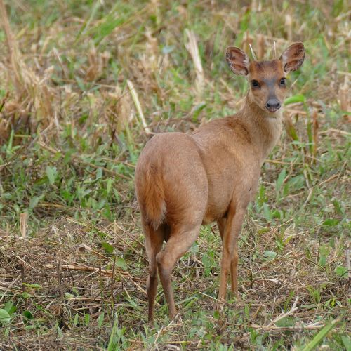 Beskrivning: Relativt liten, råviltsstor hjort med ”spetsbockshorn”. Maximal kroppsvikt på 21 kg, kroppslängd, utan svans (15 cm), 130 cm och en mankhöjd på ca 70 cm.