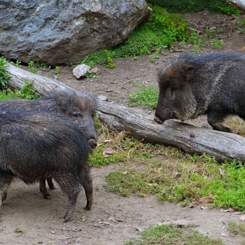 Beskrivning: Med en vikt på 45 kg är denna det största av de tre navelsvinen. Längd utan svans (10 cm) 120 cm, mankhöjd upp till 70 cm. Pälsen har lång borst. Färgen är gråbrun.