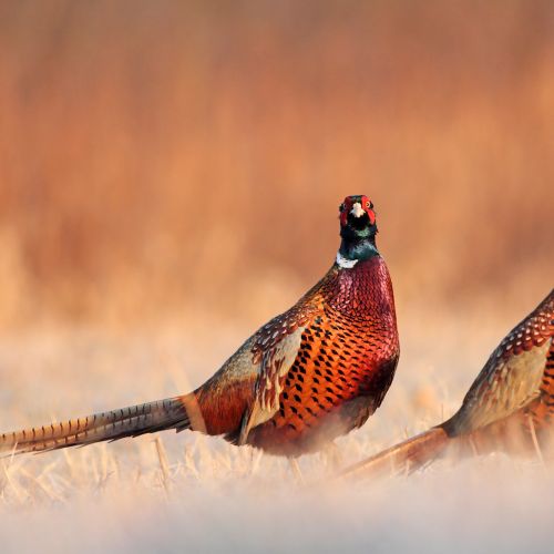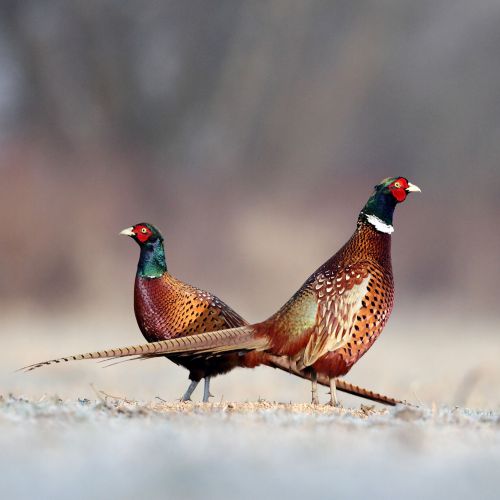 Beskrivning: Tuppen har många färger då fasanen i Europa är införd och finns i många olika underarter. Vanligtvis är kroppen täckt med ljusa, guldfärgade, kopparröda eller kastanjebruna färger, huvudet är grönt/blått med röda kinder och liten kam. Några exemplar har en vit krage. De har en lång brun stjärt som är svartstrimmig. Tuppen blir 60-89 cm i längd (stjärten är nästan 50 cm). Hönan och unga fasaner har en fläckig brun fjäderdräkt och mäter 50-63 cm i längd (inklusive stjärten på omkring 20 cm).