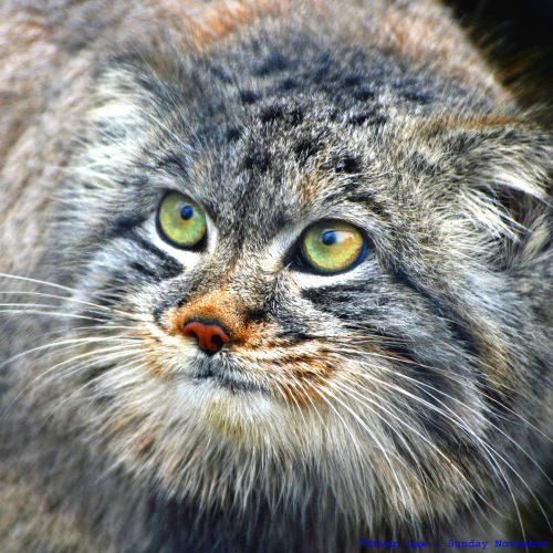 Beskrivning: Gråbrun vildkatt med rödbrun undersida. Huvudet har fina svarta och vita ansiktsteckningar, svans och kropp är utspritt randiga. Vikt upp till 6 kg, längd utan svans (35 cm), på upp till 70 cm.