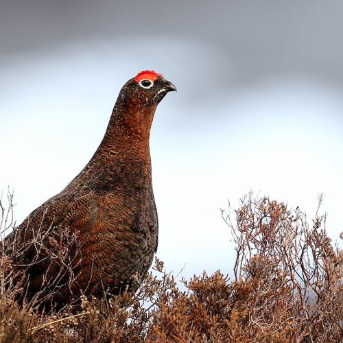 Beskrivelse: Relativt lille medlem af hønsefamilien. Den voksne han er grå på oversiden, med orange kam, sorte og brune vinger. Sort, hvidkantet hals. Hvidplettet på undersiden. Kvinde mangler den sorte farve. Bliver 35-37 cm i højden.