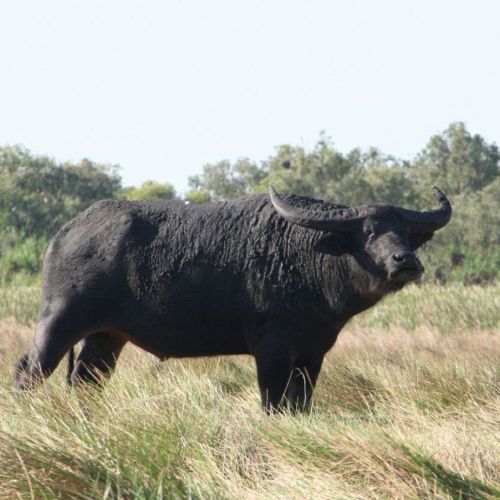 Bekrivning: Stor vildoxe som av många anses vara domesticerad. Hornen är bakåtböjda med ett stort utlägg. Kroppsvikt, upp till 900 kg och en mankhöjd på maximalt 180 cm. Kroppslängden, utan svans (100 cm), är omkring 300 cm. Pälsfärgen är gråbrun ofta täckt med slam.