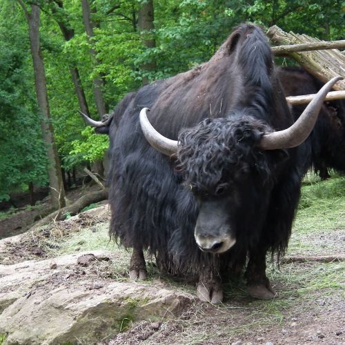 Beskrivning: Denna vildoxe är anpassad för de höga höjdernas bitande kyla med en långhårig svart päls. Kroppsvikt upp till 800 kg vid en längd på 350 cm och en mankhöjd på upp till 200 cm.